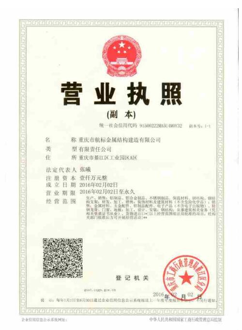 重慶市航標金屬結(jié)構(gòu)建造有限公司主要生產(chǎn)加工三大系列產(chǎn)品:第一是建筑鋁幕墻、建筑新型裝飾材料,如鋁單板、雙曲面鋁單板、鋁質(zhì)天花板、造型鋁質(zhì)吊頂板、鋁質(zhì)蜂窩板、多彩保溫隔熱裝飾一體板的整體制作,以及不銹鋼板、鐵板的成型加工及表面處理;第二是工廠標準化研發(fā)制造各種風格的輕鋼建筑和輕重鋼結(jié)合建筑,以及其它裝配式建筑,公司引進高智能化輕鋼成型加工生產(chǎn)線和專用軟件,集建筑設(shè)計、鋼結(jié)構(gòu)設(shè)計、建筑室內(nèi)外裝飾設(shè)計,鋼結(jié)構(gòu)生產(chǎn)加工、鋼結(jié)構(gòu)裝配安裝、建筑物室內(nèi)外裝飾裝修全套服務(wù)于一體。客戶只需表達所需建筑物使用功能意愿,我司即可給出多套設(shè)計方案供客戶選擇,按照客戶選定的方案進行快速、高效、節(jié)能、安全環(huán)保的加工建造。我司推出世界各國不同風格、造型各異、全精裝二到三層80——600㎡的輕鋼別墅,從設(shè)計到交付使用只需要兩個月左右即可完工;第三是公司配置了目前國內(nèi)先進的開平生產(chǎn)線,專業(yè)致力于厚度1.0——6mm,寬度600——2000mm的鋁卷加工、銷售。
